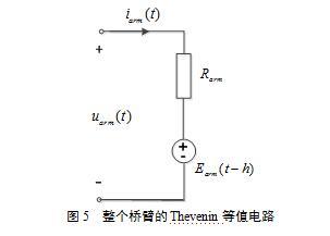 在得到單個子模塊的Thevenin等值電路后,就可以求出整個橋臂的Thevenin等值電路。設(shè)整個橋臂的Thevenin等值電路如圖5所示,下面推導整個橋臂的Thevenin等值電路。