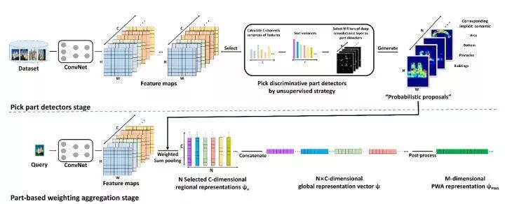 PWA PWA發(fā)現(xiàn),深度卷積特征的不同通道對應(yīng)于目標(biāo)不同部位的響應(yīng)。因此,PWA選取一系列有判別能力的特征圖,將其歸一化之后的結(jié)果作為空間權(quán)重進(jìn)行匯合,并將其結(jié)果級聯(lián)起來作為最終圖像表示。