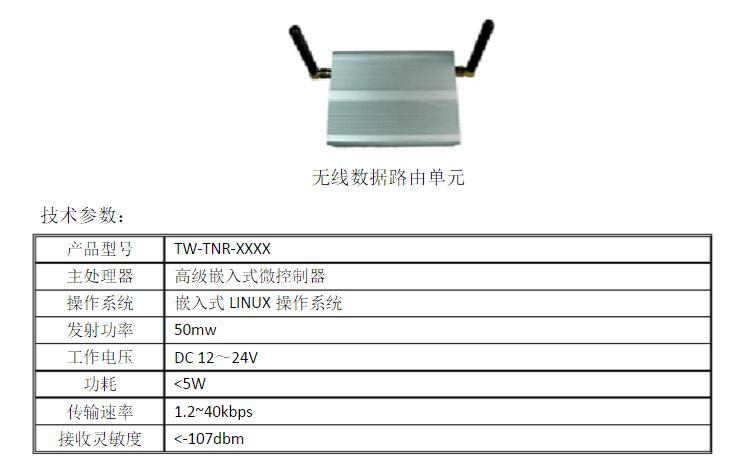 無線數(shù)據(jù)路由單元下行方式實現(xiàn)WDN協(xié)議,負責無線數(shù)據(jù)網(wǎng)無線通訊節(jié)點的接入和組網(wǎng)管理,網(wǎng)絡維護,接收無線節(jié)點數(shù)據(jù),對數(shù)據(jù)進行預處理,然后進行存儲、轉(zhuǎn)發(fā)。無線數(shù)據(jù)路由單元支持3G、GPRS、WIFI、RJ45上行接口 ,支持雙信道的無線、RJ45、RS485、RS232下行接口,實現(xiàn)WDN網(wǎng)絡數(shù)據(jù)交互傳輸。