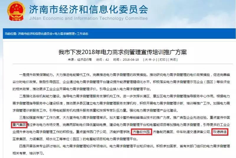 在此次濟南市經(jīng)信委重點推廣企業(yè)目錄中,中國重汽集團、齊魯軟件園、玫德鑄造的電力需求側(cè)管理系統(tǒng)由我公司設(shè)計并組織實施。其中的中國重汽集團和玫德鑄造的電力需求側(cè)管理系統(tǒng)在2017年順利通過工信部組織的示范企業(yè)評審,并獲得AA級認(rèn)定。