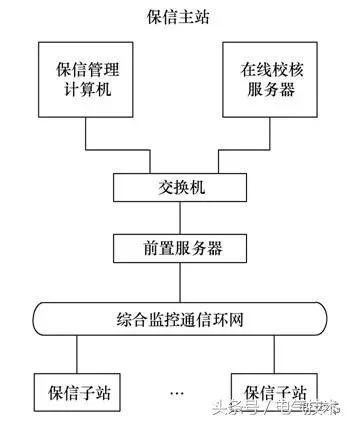 地鐵保護信息管理系統(tǒng)由“保信子站”和“保信主站”組成,其中子站負責保護信息數(shù)據(jù)的收集,主站負責保護信息數(shù)據(jù)的管理和分析。保信主站中,保護管理計算機為用戶接口設備,用于配置在線校核系統(tǒng)和讀取校核報告;在線校核服務器用于存儲校核數(shù)據(jù)庫和執(zhí)行校核算法;交換機和前置服務器用于讀取保護定值、故障波形和核心斷路器狀態(tài)。系統(tǒng)結構如圖1所示。