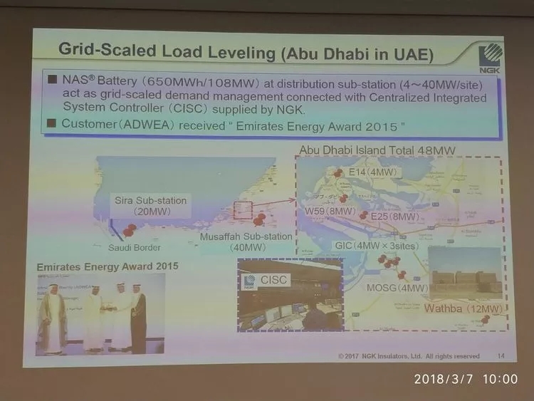 NGK insulators公司的系統(tǒng)設(shè)計(jì)經(jīng)理Hiroyuki Abe上午在亞洲開發(fā)銀行研究所給我們講解了PPT