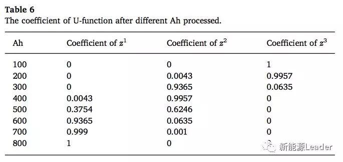 下圖為電池組的仿真結(jié)果,圖b為電池組內(nèi)的溫度分布,圖c為電池組內(nèi)散熱媒介的流動(dòng)速度分布。根據(jù)電池組內(nèi)的溫度分布,就可以根據(jù)式(11)計(jì)算出的到不同單體電池的容量衰降,并據(jù)此計(jì)算單體電池的健康狀態(tài)。我們以電池組中最中間的一只電池(2,3)為例,計(jì)算了循環(huán)不同的周期后電池衰降到不同狀態(tài)的概率,如下表5所示。可以看到在經(jīng)過1000次循環(huán)后該電池失效的幾率達(dá)到0.9991。整個(gè)電池組在不同的循環(huán)時(shí)間后失效的概率如下表6所示,可以看到在經(jīng)過500Ah充電后,電池組失效的概率為0.3754,在充電700Ah后電池組的失效概率達(dá)到0.999。