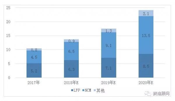 2018年—2020年中國(guó)動(dòng)力電池正極材料出貨量預(yù)測(cè)(萬(wàn)噸)