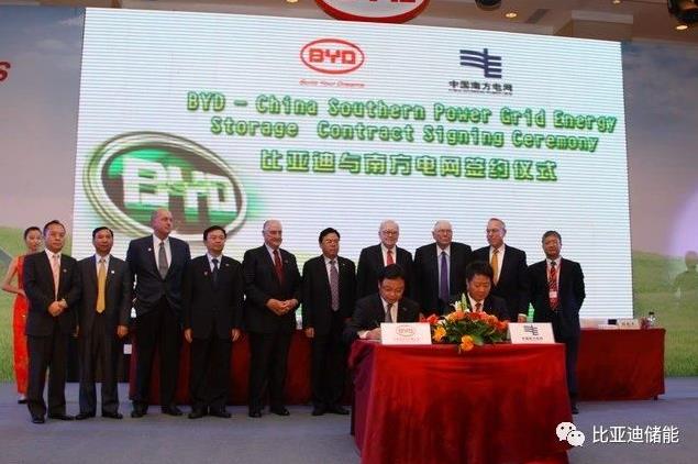 在巴菲特、芒格等貴賓的見(jiàn)證下,比亞迪與中國(guó)南方電網(wǎng)MW級(jí)商用電池儲(chǔ)能電站項(xiàng)目成功簽約。