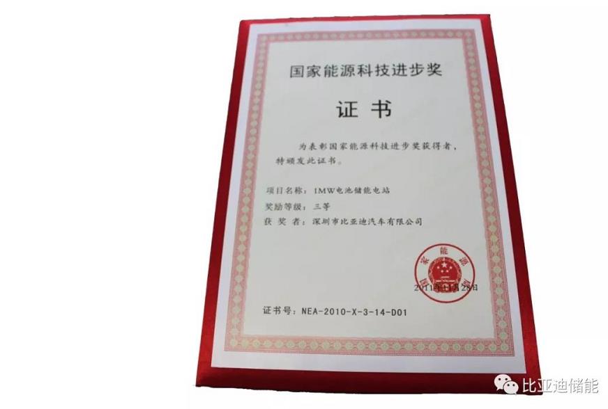 •比亞迪1MW儲(chǔ)能電站在國(guó)家能源科技進(jìn)步獎(jiǎng)申報(bào)中榮獲三等獎(jiǎng)。