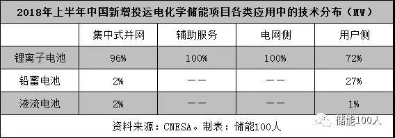 各電池路線中,鋰離子電池幾乎一統(tǒng)江山,共新增裝機(jī)94.1MW,占比為 94%,同比增長163%。而鉛蓄電池除了在用戶側(cè)還有部分應(yīng)用外,市場(chǎng)范圍大為萎縮,邊緣化程度比年初市場(chǎng)預(yù)測(cè)的更為快速。