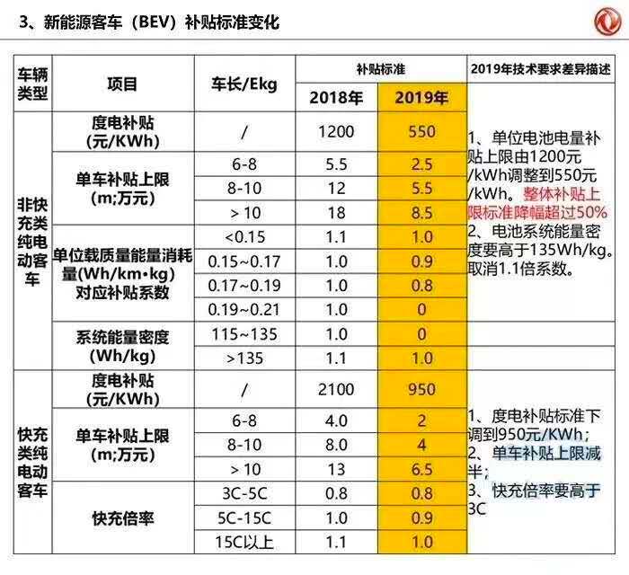 3、對于快充類純電動客車度電補貼標準下調(diào)到950元/kwh;單車補貼上限減半;快充倍率要高于3C。