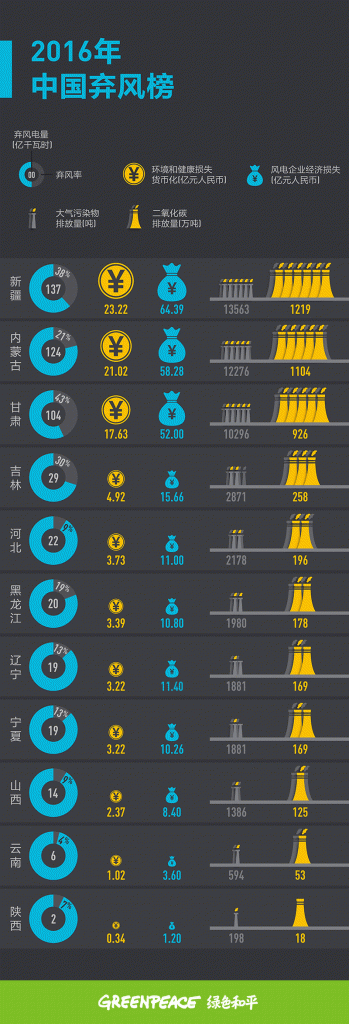 2016年中國棄風(fēng)榜 三年損失的風(fēng)電量夠北京用一年