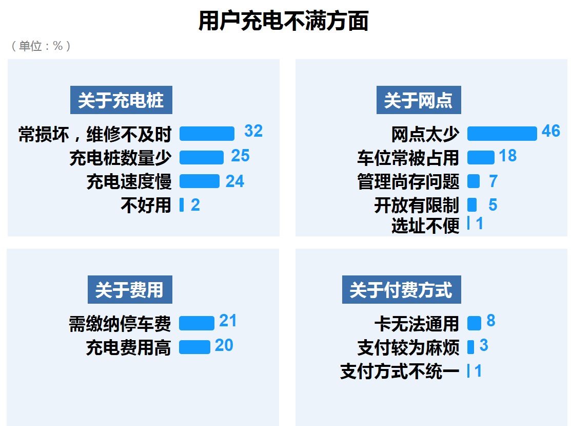 網(wǎng)點布局方面,主要是網(wǎng)點少,尋找網(wǎng)點充電相當(dāng)吃力;即使尋找到網(wǎng)點,充電樁所在停車位經(jīng)常被占用;對網(wǎng)點的管理也存在擔(dān)憂。