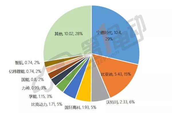 我們之前測經(jīng)測算過2017年國內(nèi)幾大動力電池企業(yè)的產(chǎn)品裝機量,也就是實實在在裝在車上的電池量。從總量上看,比亞迪和寧德時代這兩家企業(yè)瓜分了全國約44%的市場份額。