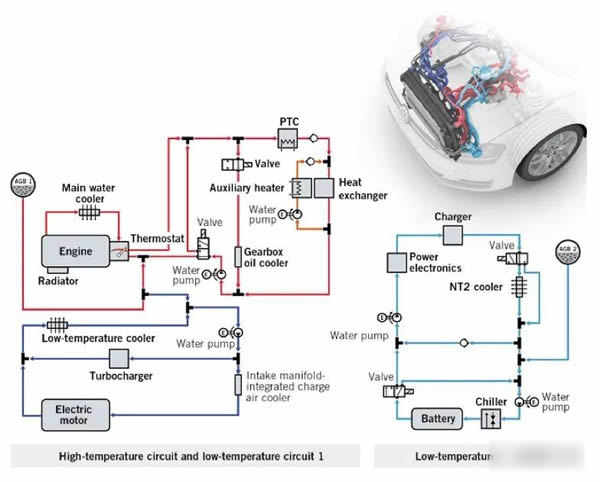↑大眾Golf GTE熱管理管路圖