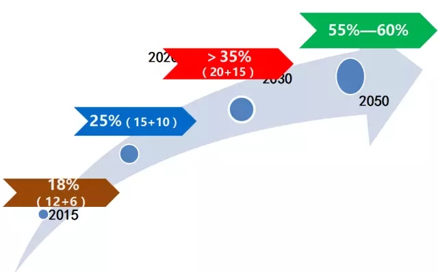 我國低碳能源在一次能源中的比例,將由2015年的12%左右增加到2020年的25%左右,希望2030年能達到35%以上,2050年能達到55%以上。這個占比數(shù)據(jù)為能源互聯(lián)網(wǎng)的發(fā)展提供了很好的評估。