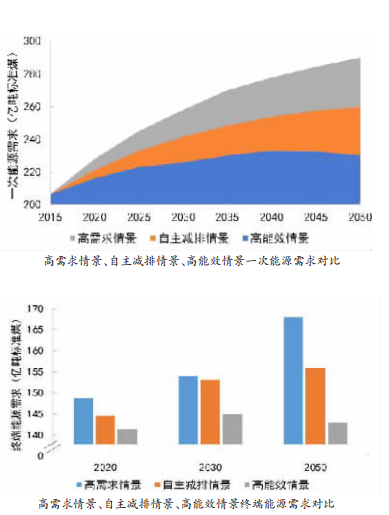 能效提升與低碳轉(zhuǎn)型是實現(xiàn)2攝氏度溫升控制目標的“兩個輪子”。高需求情景下,能源低碳轉(zhuǎn)型是實現(xiàn)溫控目標的主要手段,但投資高、難度大,還要依靠碳捕捉、利用與封存技術(shù)(CCUS)的大范圍應用;高能效情景下,雖能效提升較快,但要實現(xiàn)溫控目標也必須大力發(fā)展可再生能源。因此,能效提升與低碳轉(zhuǎn)型是應對全球氣候變化的“雙輪驅(qū)動”,必須同時發(fā)力。