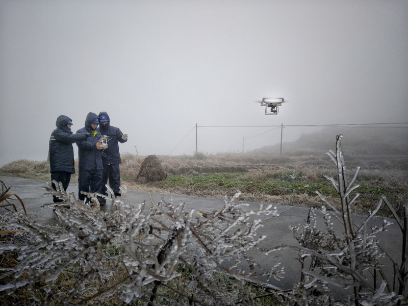 “無(wú)人機(jī)靈活高效,準(zhǔn)確性高,能夠快速抵達(dá)人力難以到達(dá)的偏遠(yuǎn)地區(qū)進(jìn)行巡視,是抗冰勘災(zāi)的好幫手。”1月28日16時(shí),韶關(guān)供電局輸電管理所員工葉高揚(yáng)和機(jī)巡小組同伴冒著嚴(yán)寒操作無(wú)人機(jī),在高海拔地區(qū)的乳源瑤族自治縣紅云鎮(zhèn)110千伏大梅線進(jìn)行特巡。機(jī)巡小組隊(duì)員克服大霧天氣視距不足,山區(qū)遙控信號(hào)盲區(qū)大的困難,攜帶設(shè)備徒步進(jìn)入山中,一邊巡查一邊記錄數(shù)據(jù)并拍照留存,及時(shí)記錄線路覆冰及樹(shù)障情況。?