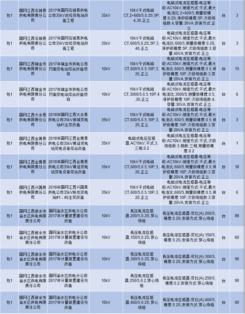 江西省 變壓器 互感器 國網(wǎng)招標(biāo)采購