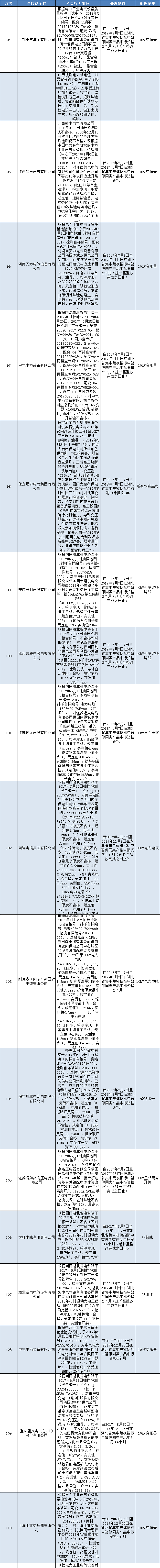 國網(wǎng)(湖北)通報的供應(yīng)商不良行為處理情況(2017.11)