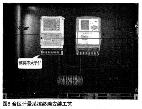 電能表、采控終端、接線盒的安裝固定工藝,互感器安裝工藝,元器件連接工藝,鉛封安裝工藝和CT二次電纜的安裝工藝。臺(tái)區(qū)計(jì)量采控終端安裝工藝如圖8所示。