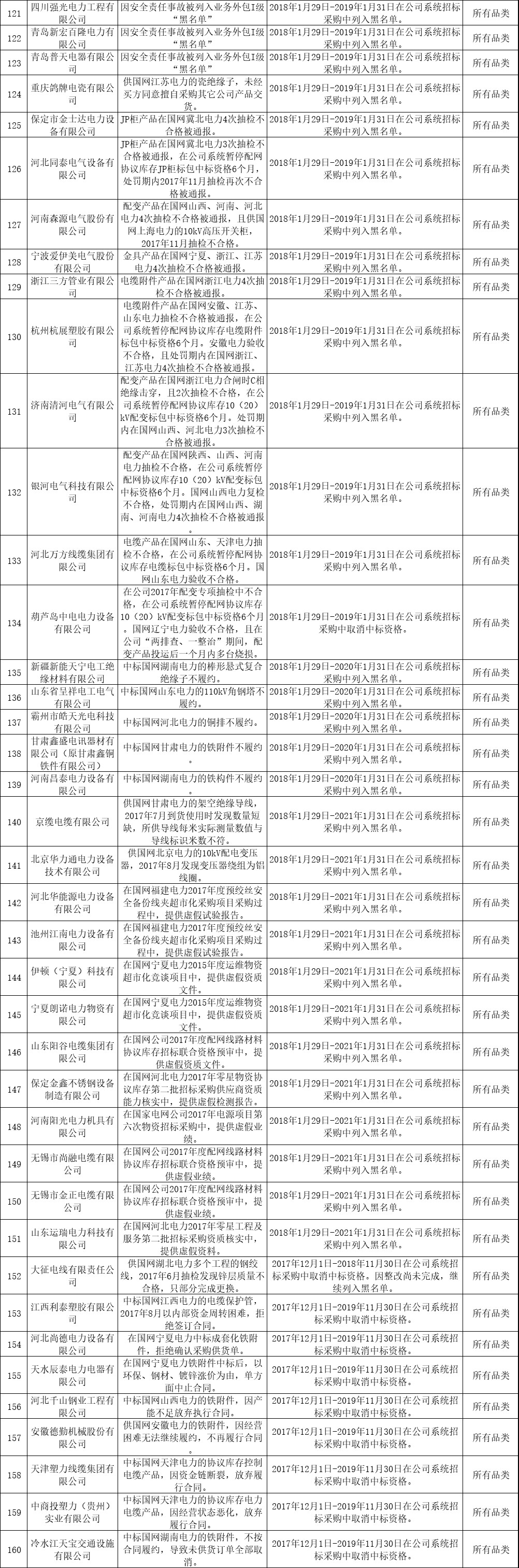 一、[國家電網(wǎng)公司] 關(guān)于供應(yīng)商不良行為處理情況的通報(2018年12月)