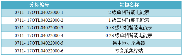 國(guó)網(wǎng)2017年第二次電能表及用電信息采集設(shè)備招標(biāo)開(kāi)始,招標(biāo)編號(hào):0711-17OTL04022000