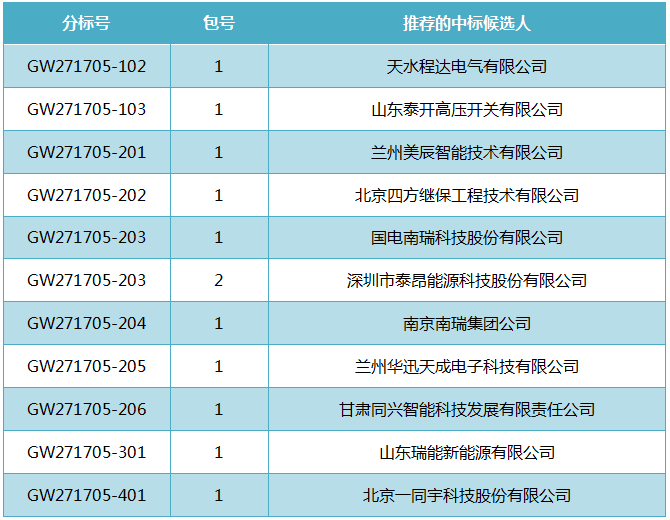 各相關(guān)投標(biāo)人:國網(wǎng)甘肅省電力公司2017年第五次物資招標(biāo)采購項(xiàng)目招標(biāo)評(píng)標(biāo)工作已結(jié)束,本次中標(biāo)涉及國電南瑞科技股份有限公司、南京南瑞集團(tuán)公司等,現(xiàn)將評(píng)標(biāo)委員會(huì)推薦的中標(biāo)候選人予以公示,公示期3天。投標(biāo)人或