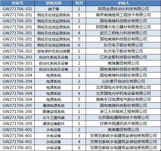 國網(wǎng)甘肅省電力公司2017年第六次物資招標(biāo)采購中標(biāo)公告(招標(biāo)編號:GW271706)