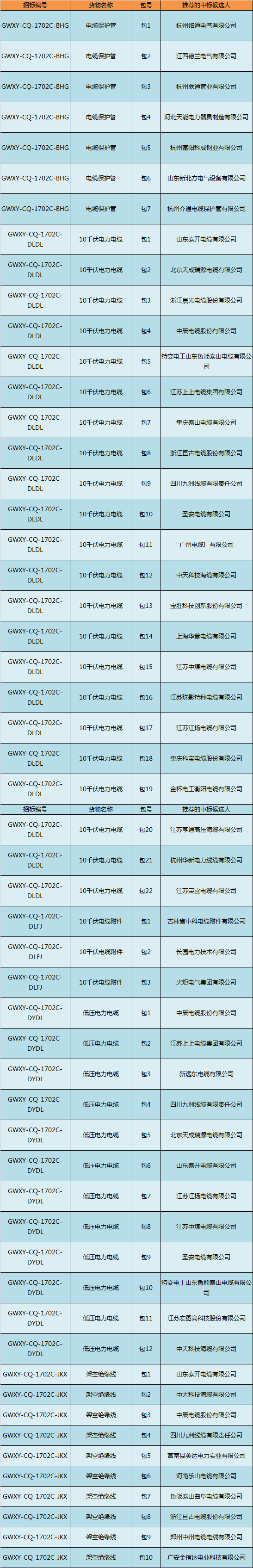 國網(wǎng)重慶市電力公司 2017 年第二次配網(wǎng)線路材料協(xié)議庫存貨物招標(biāo)采購中標(biāo)結(jié)果公告