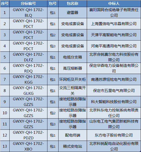 國網(wǎng)(青海)2017年第二次配網(wǎng)設(shè)備/線材協(xié)議庫存中標(biāo)結(jié)果