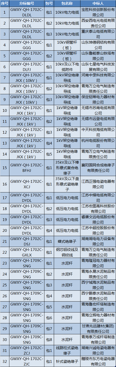 國網(wǎng)青海省電力公司2017年第二次配網(wǎng)線路材料協(xié)議庫存貨物招標(biāo)活動中標(biāo)公告