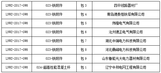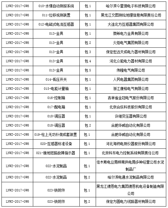 國(guó)網(wǎng)黑龍江2017年第六批物資招標(biāo)采購(gòu)中標(biāo)候選人公示