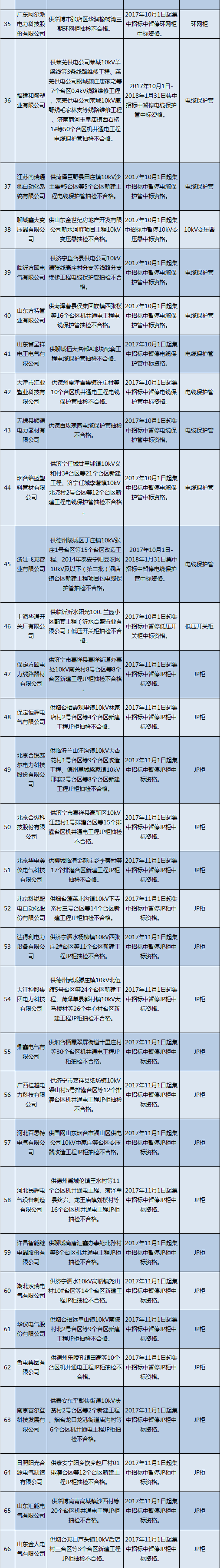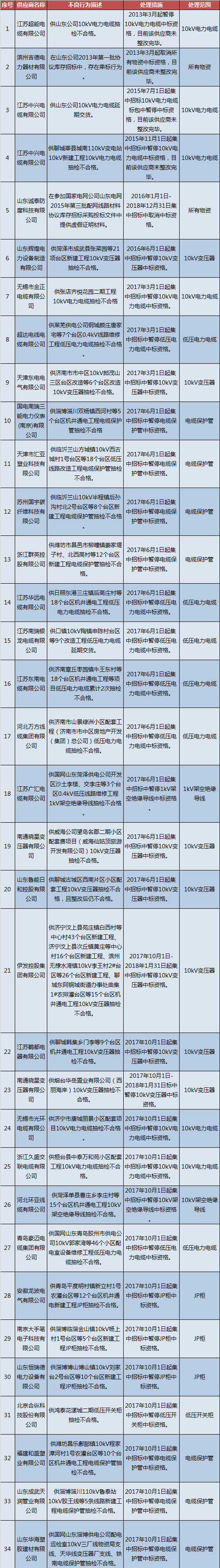 為促進供應商誠信履約,保證產品質量,確保電網建設順利進行及安全可靠供電,依據(jù)《國家電網公司供應商不良行為處理管理細則》的有關規(guī)定,對出現(xiàn)產品質量問題、履約不誠信等問題的供應商進行了處理。具體處理情況如下: