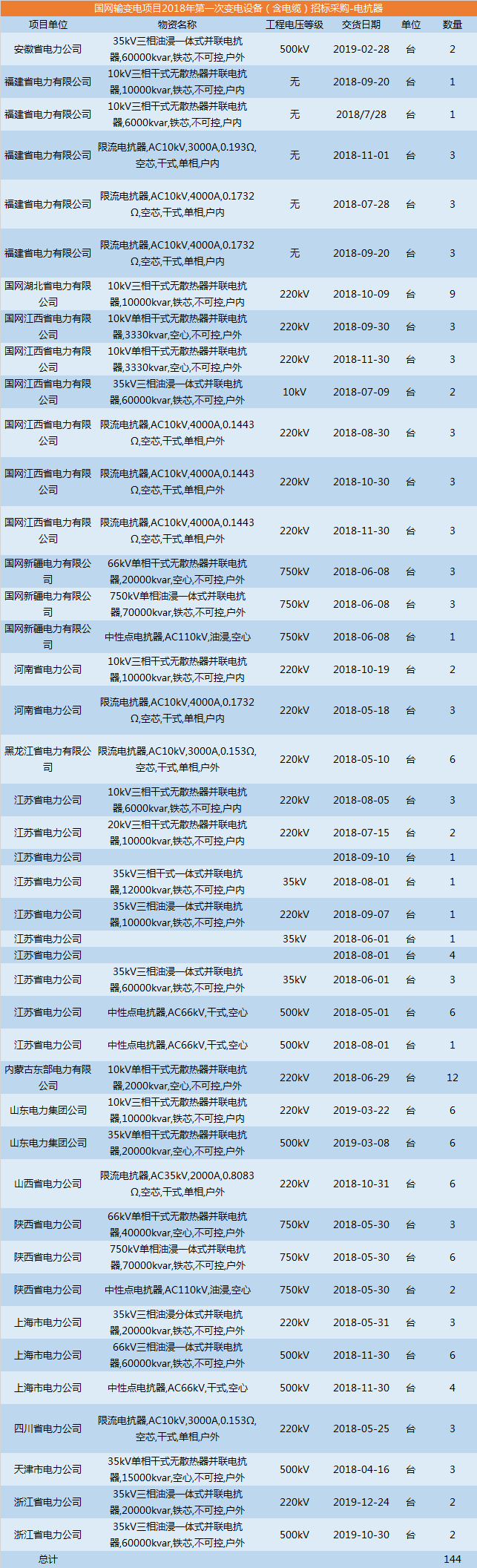 144臺電抗器 國網(wǎng)輸變電項(xiàng)目2018年第一次變電設(shè)備(含電纜)招標(biāo)采購公告