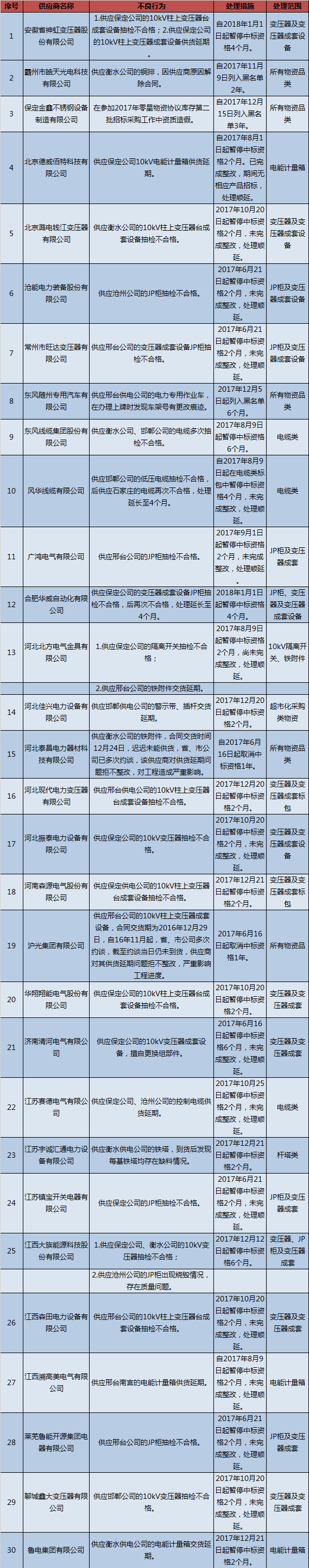 國網(wǎng)河北關(guān)于不良行為供應(yīng)商情況的通報(bào)(2018.1)