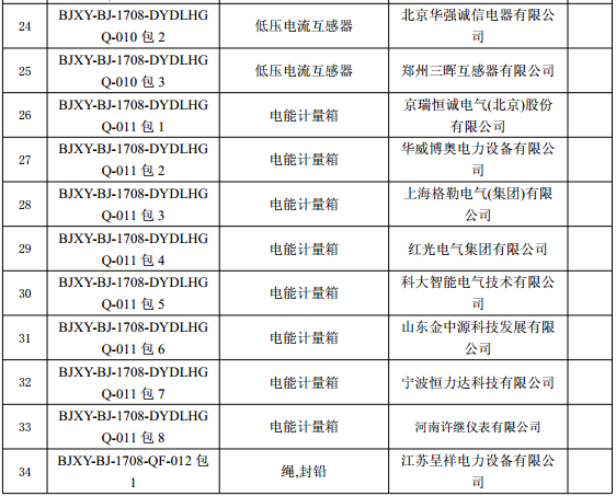國網(wǎng)北京市電力公司2017年第二批協(xié)議庫存物資招標采購中標人名單