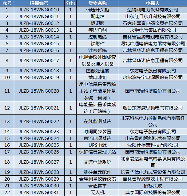 國網(wǎng)(吉林)2018年第一次物資類集中規(guī)模招標中標結果