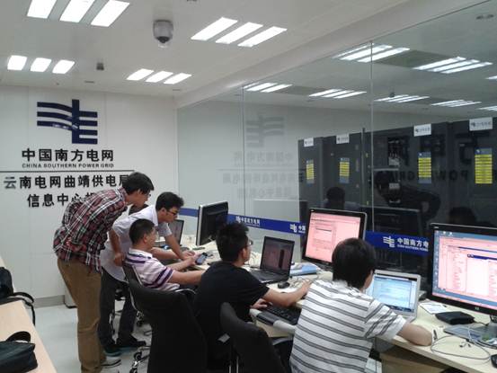 圖為實(shí)施配合A組成員正在曲靖供電局信息中心機(jī)房開展工作